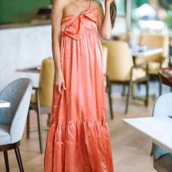 HAZEL & OLIVE Dance Floor Bound Maxi Dress – Dark Peach