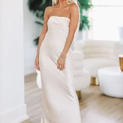 HAZEL & OLIVE Infinite Satin Maxi Dress – Ivory