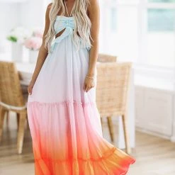HAZEL & OLIVE Lost In Bermuda Maxi Dress – Mint Orange Ombre