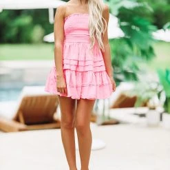 HAZEL & OLIVE Colorpop Satin Mini Cocktail Dress – Pink