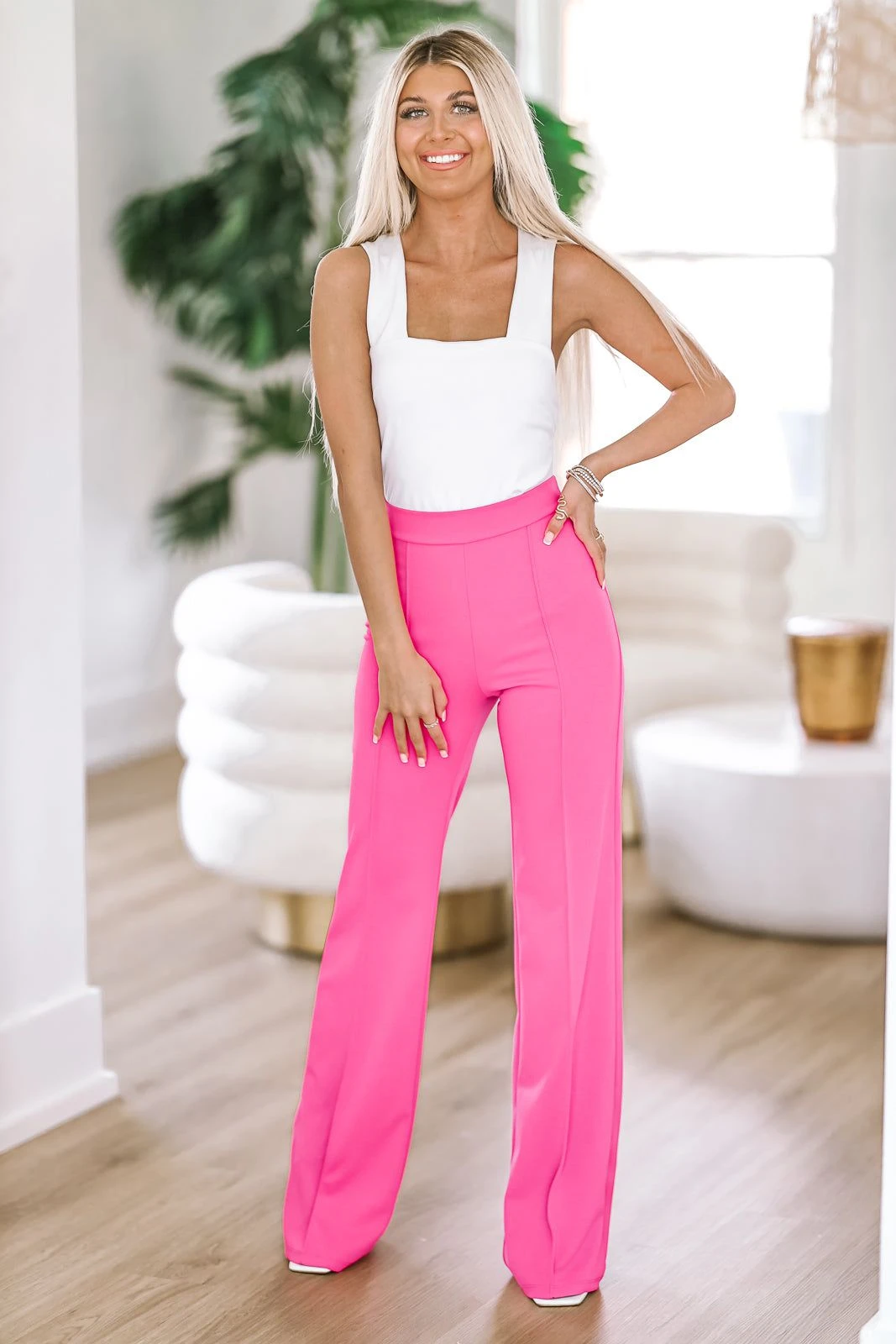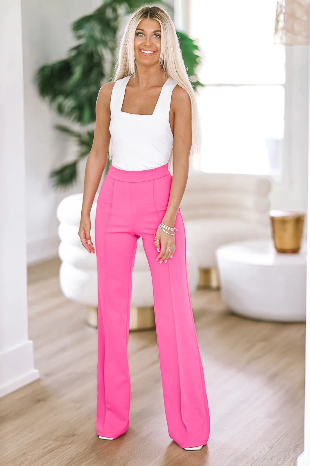 The color for spring 2023! We are obsessed with these white pants and the flattering fit. These are slimming and so comfy. Pair them with your favorite bodysuit to make the perfect trendy going out look.Â