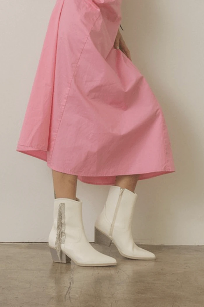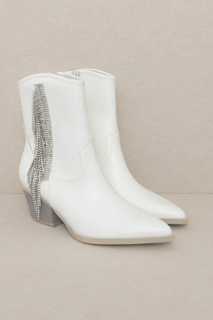 HAZEL & OLIVE Rhinestone Cowgirl Booties – White