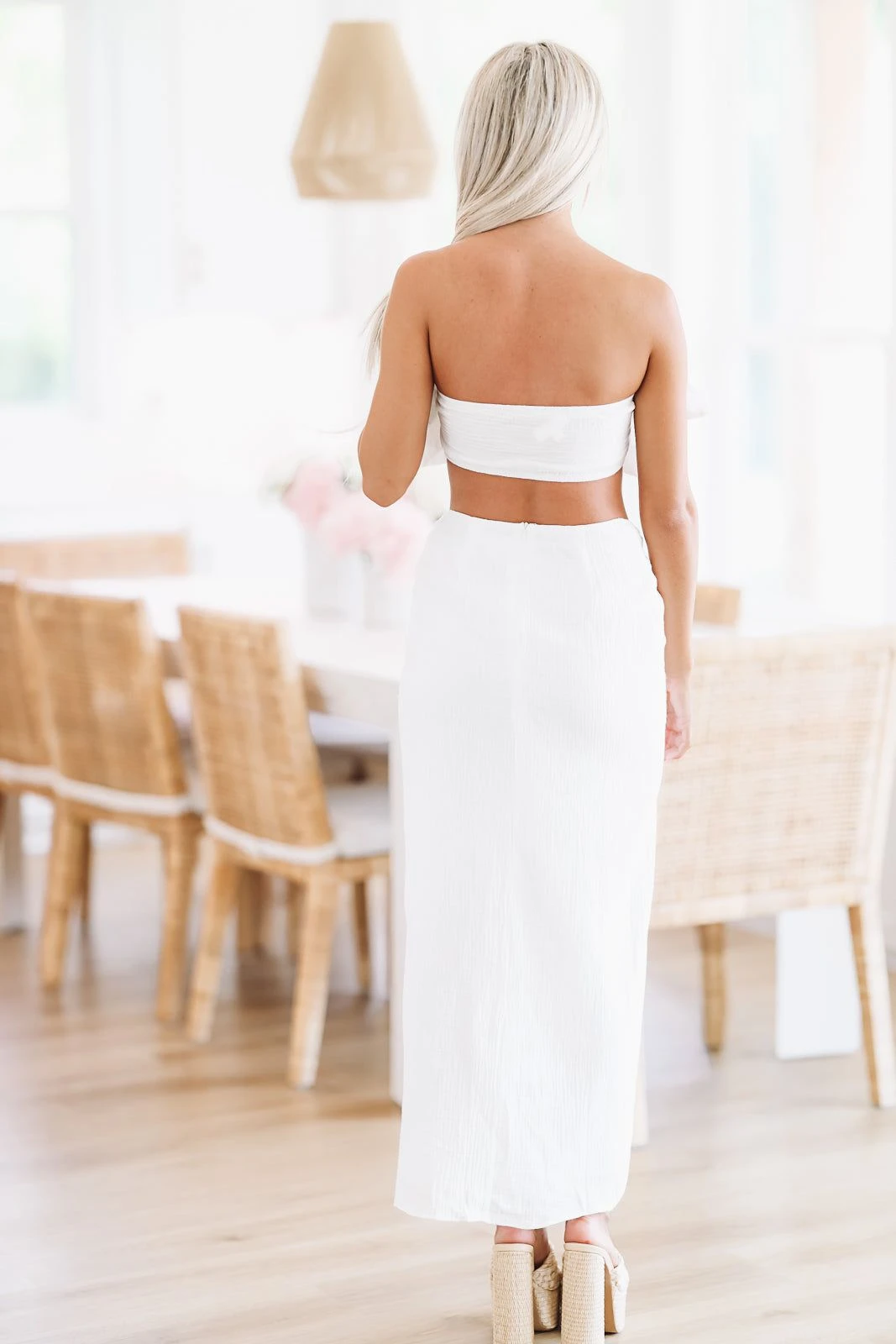 HAZEL & OLIVE Seyla Moon Two Piece Skirt And Crop Top Set – White