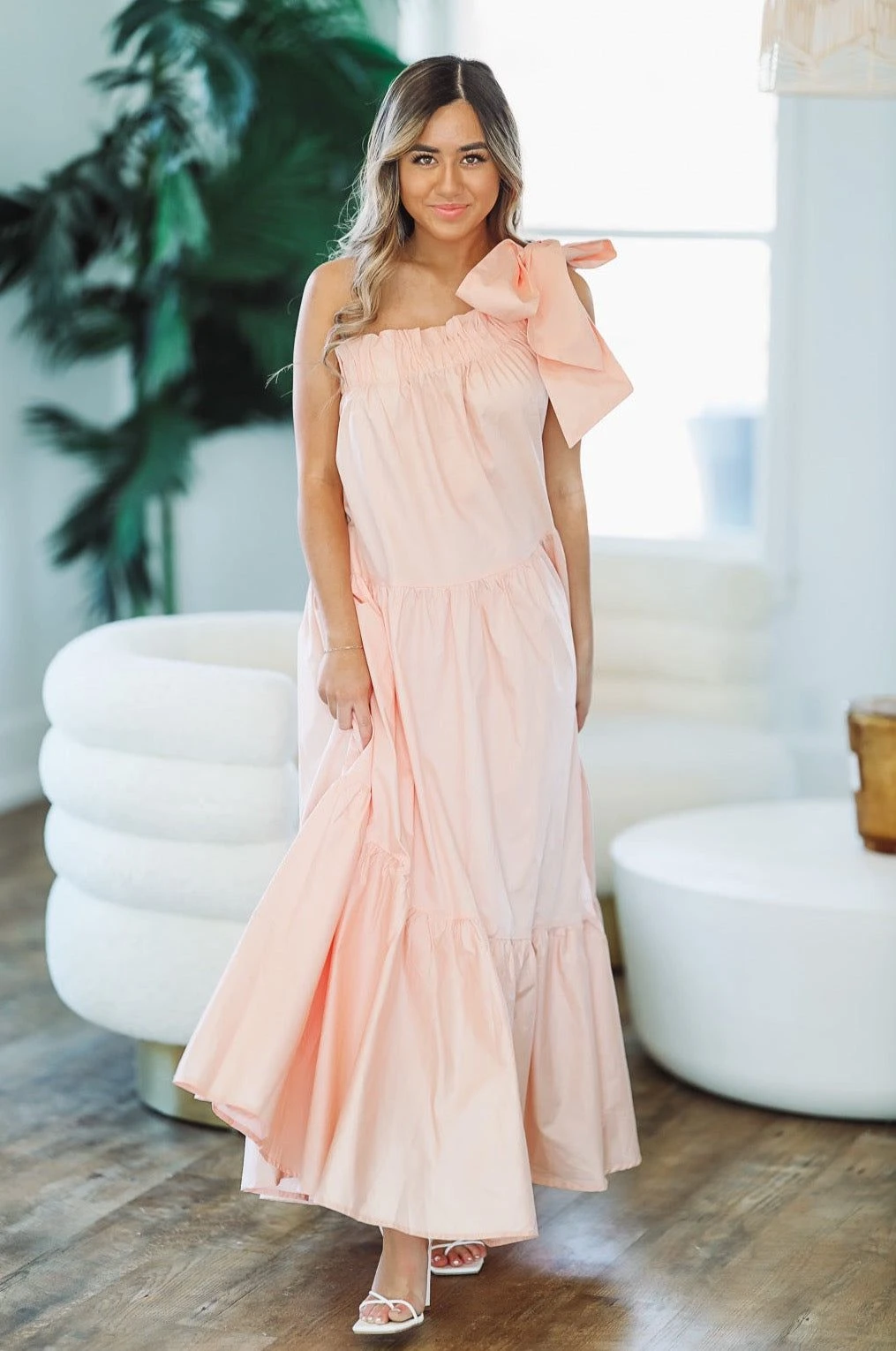 HAZEL & OLIVE Sweet As A Peach Maxi Dress – Light Pink