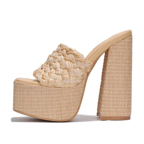 HAZEL & OLIVE Woven Platform Heels – Nude