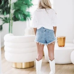 HAZEL & OLIVE Can’t Stop Wont Stop Denim Cut Off Shorts – Medium Wash