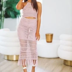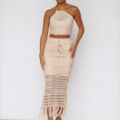 HAZEL & OLIVE Crochet Maxi Skirt – Taupe