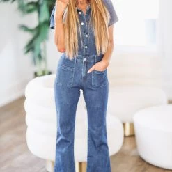 HAZEL & OLIVE Ellie Denim Jumpsuit – Dark Blue