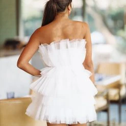 HAZEL & OLIVE Tulle Me Around Cocktail Mini Dress – White