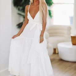 HAZEL & OLIVE Best Day Maxi Dress Gown – White