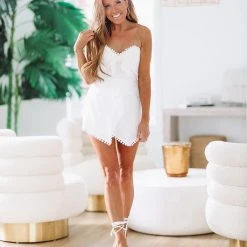 HAZEL & OLIVE Honeymoon Romper Dress – White