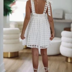HAZEL & OLIVE Plaid Organza Babydoll Dress – White