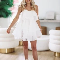 HAZEL & OLIVE Let’s Fall In Love Ruffle Romper Dress – White