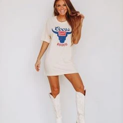 HAZEL & OLIVE Coors Banquet Graphic Tee / T-shirt Dress – Cream