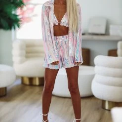 HAZEL & OLIVE Groovy Baby Button Down Top And Bralette – Pink And Blue
